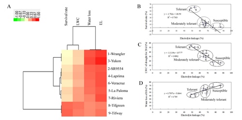 9份商业化狗牙根材料被聚类成高抗、中抗以及敏感等3个类型