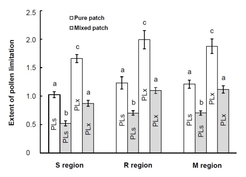 三个区域中不同斑块类型中密穗马先蒿花粉限制的程度差异(Annals of Botany)