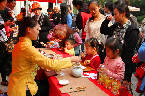 菊花蛋糕、菊花马卡龙、菊花曲奇饼干……武汉植物园开展的特色食菊饮菊活动别开生面,色香味俱全的菊花美食让市民一饱口福。邀请市民品尝菊花美食和菊花茶,欣赏菊花茶艺表演,展示菊花的实用价值。
