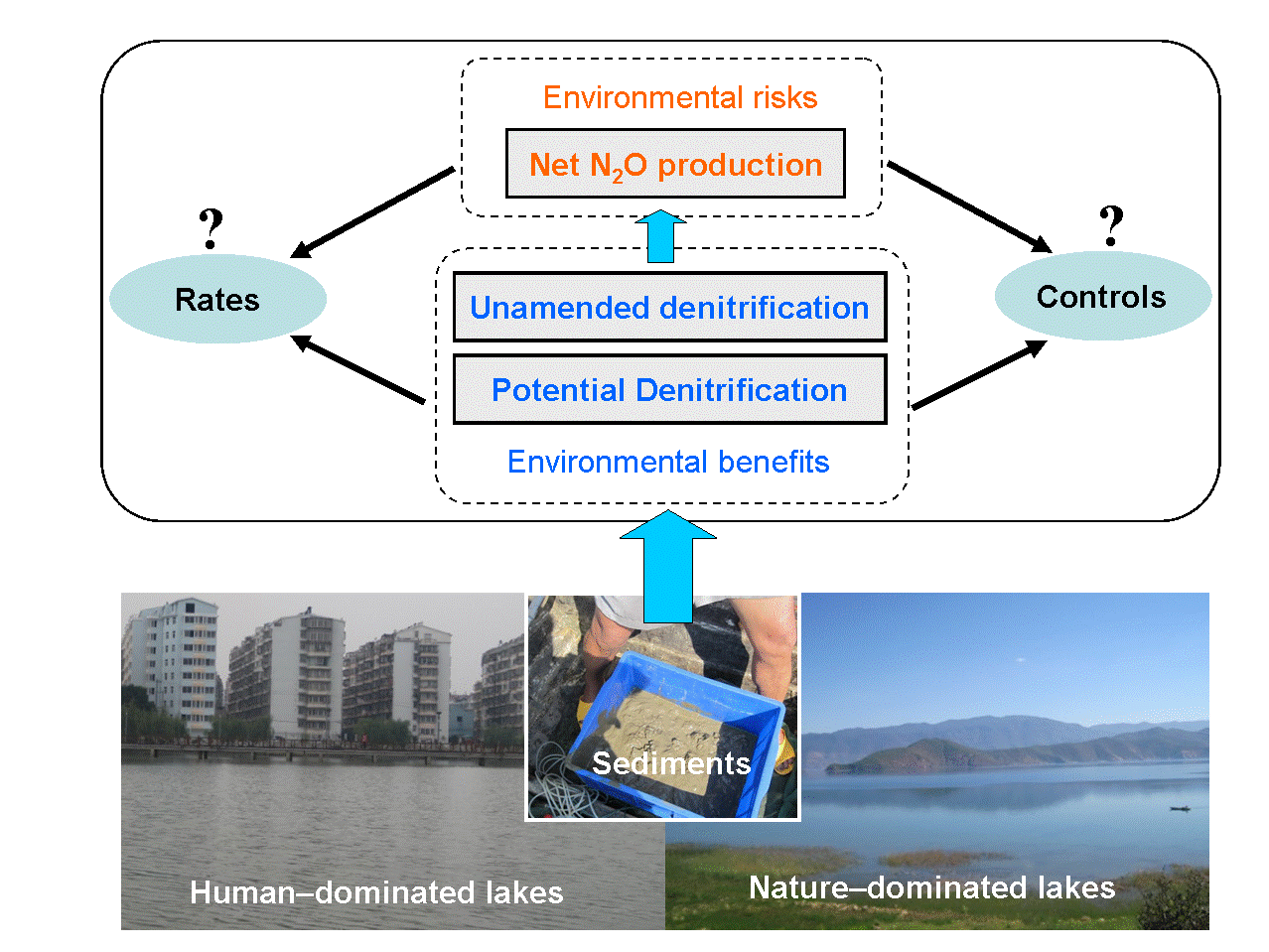 中科院武汉植物园湿地生态学科组的刘文治、王志秀和刘贵华等以我国西南地区的20个高原湖泊为对象,采用乙炔抑制‒气相色谱法测定了湖泊底泥的潜在反硝化、背景反硝化以及净N2O产量等参数。根据Seitzinger等人建立的模型,预测每年输入高原湖泊的氮中,36.43–81.40%可以通过反硝化途径去除。底泥反硝化作用与水化学、底泥理化性质以及流域土地利用都有显著相关性。在人类活动干扰严重的湖泊(比如滇池),反硝化主要受底泥理化性质特别是氮含量的影响,而在人类活动干扰较少的湖泊(比如泸沽湖),反硝化则主要由水体中的氮含量决定。