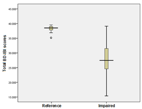 训练样本中所建立的底栖藻类生物完整性指数的箱式图