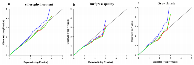 基于Q ,K ,Q +K 三模型的叶绿素含量、草坪质量和生长速率Quantile-quantile plots 分析