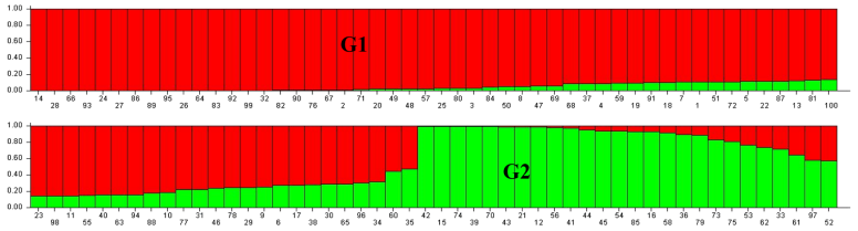 武汉植物园草坪种质资源学学科组孙小艳博士在傅金民研究员的指导下,以课题组收集的100份来源于33个国家地区的高羊茅种质材料,在武汉夏季进行两轮高温处理,对每份基因型材料的生长速率(GR),草坪质量(TQ),存活率(SR),叶绿素含量(CHL),蒸腾速率(ET)进行实时采集,构建高羊茅耐高温功能性状数据库。并利用SSR标记技术完成了高羊茅群体结构分析和耐热性状关联分析。结果表明5个功能性状GR,TQ,SR,CHL和ET在高羊茅基因型间呈现显著遗传多样性。从200对高羊茅EST-SSR标记中筛选出100对多态性标记,连接上FAM、HEX、ROX和TAMRA等荧光基团,利用ABI 3730测序仪进行SSR位点检测,用Structure软件对100份高羊茅进行群体结构分析,用Structure 2.2软件的分群结果,在P<0.001的水平下将分1-3群的关联分析结构的Q值分别做关联分析。群体结构分析结果表明k=3时分群结果最佳。G1类群是最大的类群,包括91份高羊茅材料(包括23个商业品种和68份野生品种)。G2类群包括21个野生高羊茅材料,大部分来源于亚洲地区,G3类群最小,包含8份材料,其中5个野生高羊茅材料来源于非洲。基于Q + K混合模型,在两轮试验种分别鉴定有97 和 67个SSR位点与高羊茅耐热性状相关联(P < 0.01)。