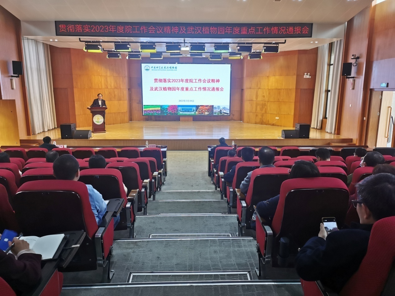 园主任王青锋传达了中国科学院2023年度工作会议精神。他强调,要坚持以习近平新时代中国特色社会主义思想为指导,认真贯彻落实党的二十大精神,聚焦“四个率先”和“两加快一努力”目标要求,根据中科院党组部署,严格按照“聚焦布局、重塑队伍、提升效能”的总体思路,以“强基础、抓攻关、聚人才、促改革”为重点,狠抓工作落实,提升科技创新体系能效,奋力开创武汉植物园改革创新发展新局面。