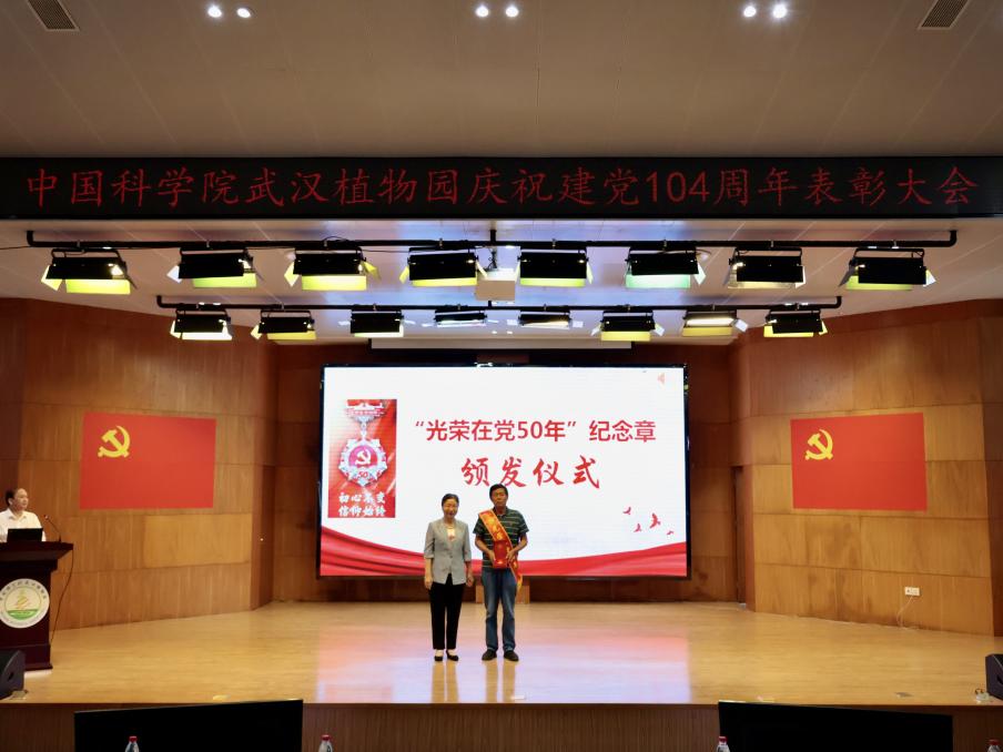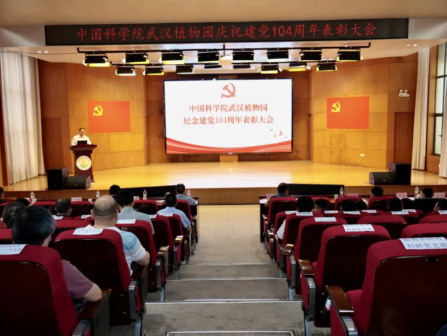 为热烈庆祝中国共产党成立104周年,表彰先进典型,弘扬榜样力量,激励全园党员干部职工在科技强国新征程上奋勇争先,6月25日上午,中国科学院武汉植物园庆祝建党104周年表彰大会举行。会议由园纪委书记贺锋主持,园领导班子成员、党委委员出席,全体党员参加,特邀统战人士代表、青年理论学习小组成员到场参会。