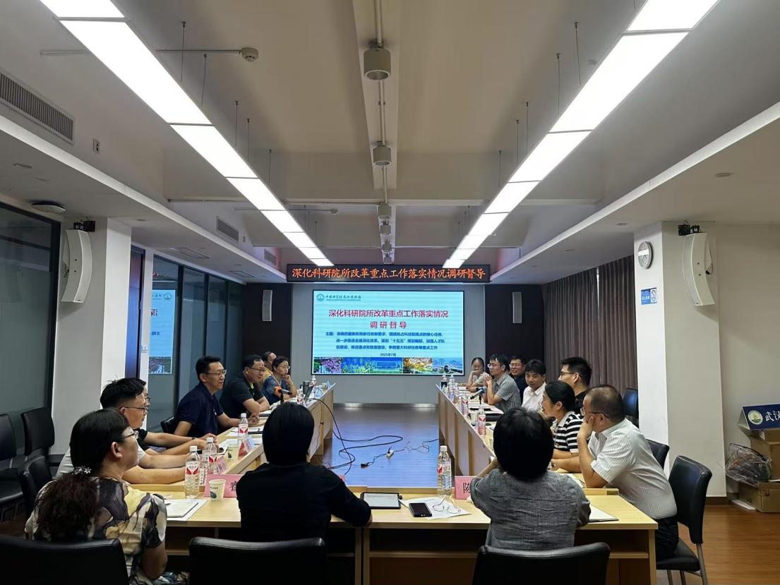 为深入贯彻习近平总书记重要指示精神和中国科学院党组工作要求,深化科研院所改革重点工作落实,7月14日,中国科学院武汉分院副院长、分党组成员关武祥,科技合作处处长王亮伟一行到武汉植物园开展深化科研院所改革重点工作落实情况调研督导。领导班子成员、党委委员、科技骨干代表出席会议。