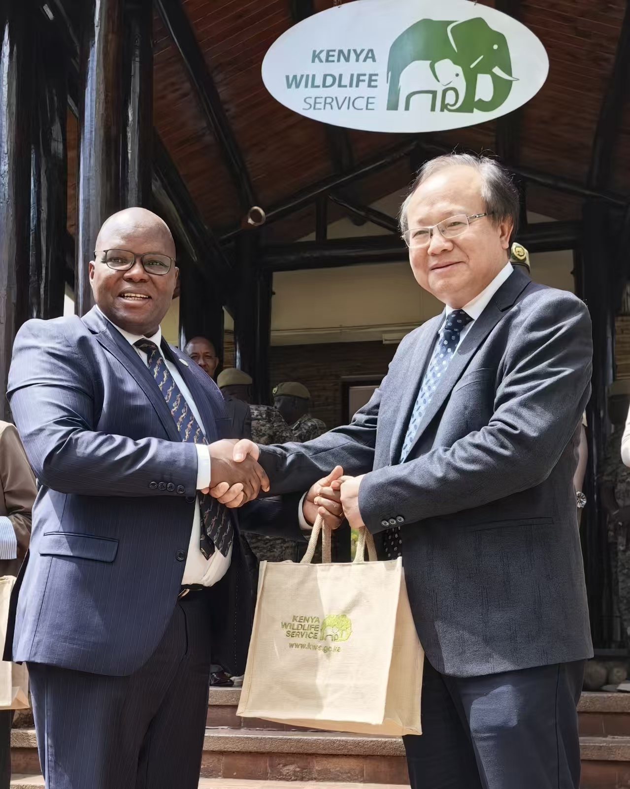 王青锋主任与KWS 局长Erustus Kanga博士(左)