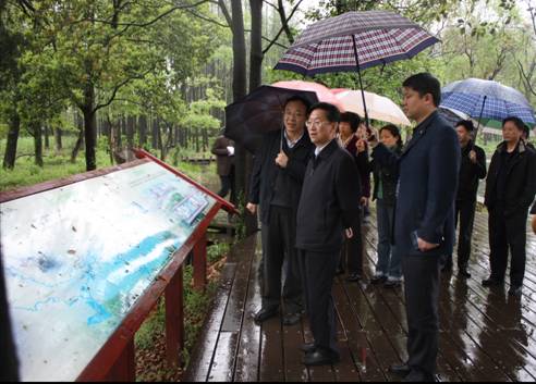 4月11日,湖北省委副书记、武汉市委书记杨松在武汉市委常委、市委秘书长彭丽敏,武汉市委常委、政法委书记、市公安局长胡绪鹍等人的陪同下冒雨到武汉植物园视察工作。武汉植物园党委书记、副主任罗志强等热情接待了杨松书记一行。