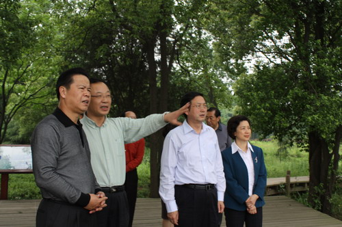 5月14日,湖北省委常委张昌尔在省委副秘书长刘田喜、省旅游局局长张达华、东湖风景区管委会主任石大鸿等陪同下视察武汉植物园。