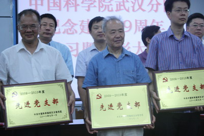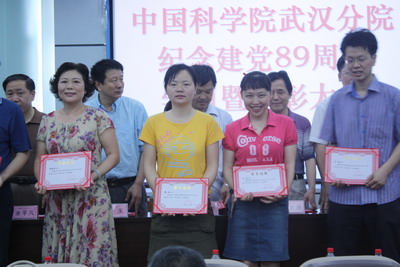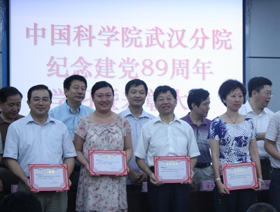 在6月29日召开的武汉分院庆祝中国共产党成立89周年学习暨表彰大会上,武汉植物园王豫兰、党海山、廖利同志荣获“优秀党员”称号、刘兵同志荣获“优秀党务工作者”称号、离退休党支部荣获“先进党支部”称号,受到了武汉分院党组的表彰。