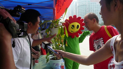 武汉植物园作为参展单位之一,植物园副主任王占军带领园艺中心科普开放部参加了本次活动。活动中,武汉植物园工作人员向公众集中进行内容丰富、形式多样的低碳环保绿色科普教育。在奇趣植物活体展示中,会收缩的含羞草、能吃虫的猪笼草、喜欢晒太阳的向日葵等,深受大家的喜爱,很多参观的市民会情不自禁去触碰它们,了解它们的生长习性;在“花博士养花咨询处”,不少喜爱种花的市民围堆在一起,向“花博士”咨询各类花草的养护窍门,“花博士”帮助大家解除花草植物的各种疑难杂症,并现场接受了武汉教育频道、武汉科技报等多家媒体采访。除了这些动静相宜的科教宣传外,武汉植物园万余份各类养花科普图册和旅游优惠券,不足一小时就发放罄尽。值得一提的是,植物园首次对外展出的向日葵卡通布偶成为活动现场青少年学生的最爱,不仅吸引一批批小朋友前来围观,还有外国朋友也忍不住上前合影留念。