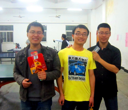 左起尹小健(男单亚军),刘海波(男单冠军),刘司浪(男单季军)