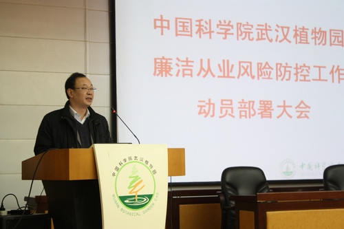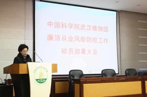 2月1日,武汉植物园召开廉洁从业风险防控动员部署大会。特邀武汉分院党组书记、副院长陈平平作动员报告。园领导、党委委员、纪委委员、中层管理人员、各学科组组长、副高级以上专业技术人员共100余人参加了会议。会议由武汉植物园党委书记、副主任罗志强主持。