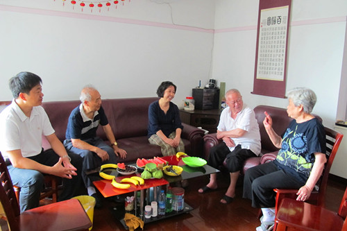 慰问老党员刘俊贤(右二)和肖厚英(右一)