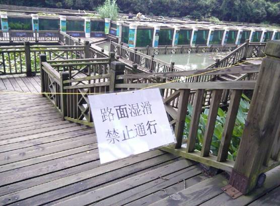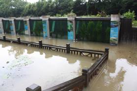此次特大暴雨雨势猛烈,持续时间长,加之东湖水位迅速上升,使得武汉植物园园区积水排出受阻,低洼地严重渍水,进而引起多处围墙倾斜倒塌、道路被冲毁、木栈道几乎全部被水淹没,植物的受灾情况更是严重。