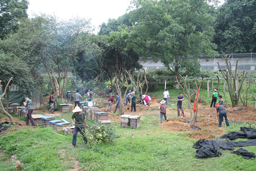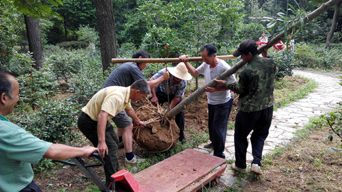 山茶园景观优化工作6月份开始动工,园地管理部调兵遣将、集中攻坚,几项基本工作已经完成。通过对土壤的深翻和施肥率先完成了山茶园土质的改造;通过规划利用猕猴桃园“闲置”油茶,对其进行山茶嫁接,先后移入16棵树形良好、胸径较大的油茶到山茶园,近期还将对猕猴桃园内留存的63棵油茶及移栽到山茶园中的13棵油茶共76棵进行嫁接。过对山茶园入口处茶梅、山茶进行了重新布局,重点种植了7个早花山茶品种的14棵高杆嫁接山茶,完成了对山茶园景观入口的改造。11个香花品种的21棵高杆嫁接山茶入驻,景点“迷图茶香”也初具雏形,将为游客营造一种漫步山茶林,品味幽茶香的意境。