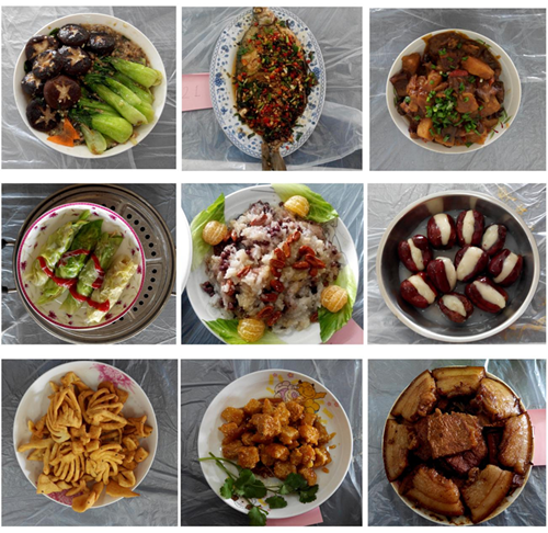 11点左右,美食们开始往活动中心集结。首先上场的是饺子大军,各种蒸的,煮的,猪肉芹菜馅儿的,韭菜鸡蛋馅儿的,满满摆了一桌。接下来上台的就是大厨们的杰作了。你瞧那一盘摆着顶着小花伞的香菇肉末青菜,再看那一盘洒满彩色菜丁的整只红烧鱼,还有那一盘颜色金黄的拔丝地瓜,以及那个张着嘴巴含着糯米笑得开怀的大红枣。还有,当那一盘扣肉揭开时,你听周围响起的惊叹声。果然是琳琅满目,目不暇接。大众评委们已经忍不住了,各自端着碗,紧紧握着筷子,做好开动的姿势。随着一声“可以开始品尝了”,大家便投入了热火朝天的美食战斗中。于是,此起彼伏的“好吃“、“不错”、“哇,好香”不觉于耳,还有总是不忘记 “另一半”的声音:“××,快来,这个好吃!”,还有一个声音在后面喊着“给我留一个啊!!”。还有一些同学则品尝着不同的食物,还互相交流着各自的做菜心得。