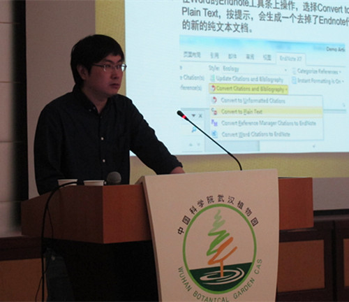 4月28日上午,应广大研究生的要求,中科院武汉植物园邀请武汉文献情报中心的学科馆员张吉在三号会议室做了一场题为“Endnote应用的最后一步——完善参考文献”讲座,全体在园研究生及部分科研人员参与了本次讲座。