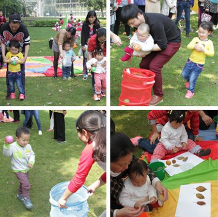 为增强活动的趣味性及互动性,团委特邀请了金宝贝早教中心的老师带领大家一起开展亲子活动。根据1-3岁幼儿的年龄特征并结合武汉植物园的春季植物特色,老师们精心编排了当天的互动游戏:分享春天的歌曲,让每一个家庭欢乐融入活动;投球游戏,通过宝宝比赛及妈妈与宝宝的共同游戏增强了家长与孩子的亲密;捡树叶、树叶粘画,不仅让宝宝们与大自然亲密接触,同时大大提升了宝宝的自然感知能力。