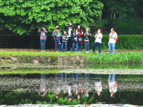 一大早很多参赛队伍就已到场,一支参赛队包括一名带队老师和四名小队员。各参赛队在8:30-10:30之间统一在植物园观鸟,最终评定结果将由观察鸟种数量、记录手册内容和观鸟行为等因素决定。各个队伍都兴高采烈,全副武装。他们背着背包,挂着望远镜,手拿记录手册。各参赛队在规定时间内,将记录手册上交。以马敬能博士为首的专家评委团对结果进行审定,并召集个别小组的队员,进行现场提问质疑,确定观察鸟种是否正确,以保证活动的公正。活动最后,各参赛队伍进行了合影留念。