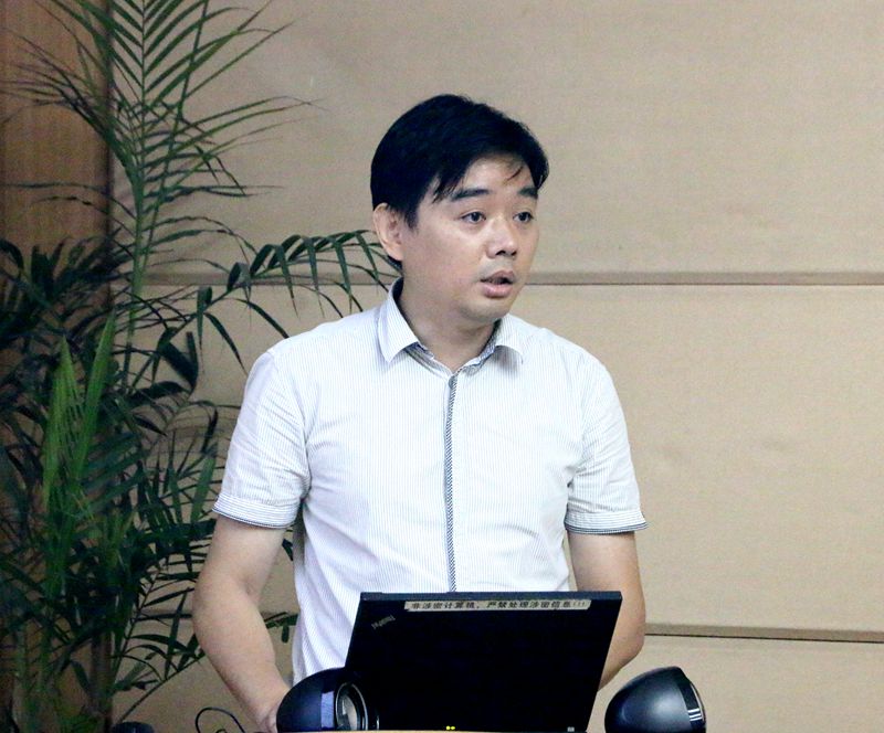 宣传委员胡波用PPT图文并茂和大家一起学习了廖俊波和黄大年同志的先进事迹。
