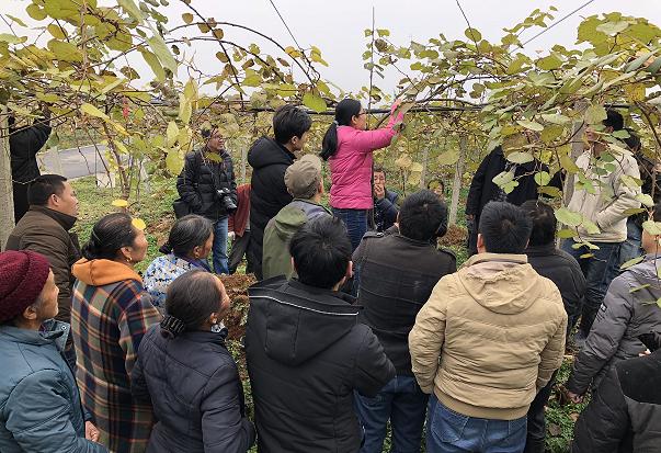 武汉植物园为湖南花垣十八洞村的3000亩猕猴桃产业园提供品种支持以及综合配套种植技术和服务。该园自2014年9月开始建设,经过3年的精心培育和科学管护,今年首次挂果,每位村民可增收约1000元。15日,支部一行前往产业园对企业技术人员和农户进行猕猴桃冬季修剪和施肥的田间培训,强调要高度重视冬季修剪和田间管理,以保证来年的高产和优质。
