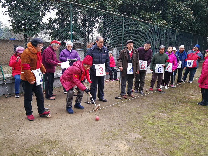 门球比赛掀起系列活动高潮。虽然天气稍阴冷,大家参赛的热度丝毫未受影响。门球是一项特别适合老年人参加的健身项目,我园许多老年人已坚持参加了多年。加上今年又有许多新手加入,更壮大了队伍,增添了比赛的热闹气氛和竞争强度。比赛采取循环赛,每个队都有一番交手与较量。别轻看了八十多岁的老太们,她们神情笃定,胸有成竹,威风不输当年佘太君。她们配合默契,充分运用战略战术,往往挽狂澜于危急关头,关键时刻扭转了局面。大家通过平日训练和比赛,既锻炼身体,娱悦身心,又联络了老同事间的感情。