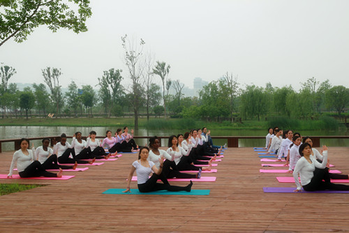 武汉植物园举行“赴春天之约”户外瑜伽活动