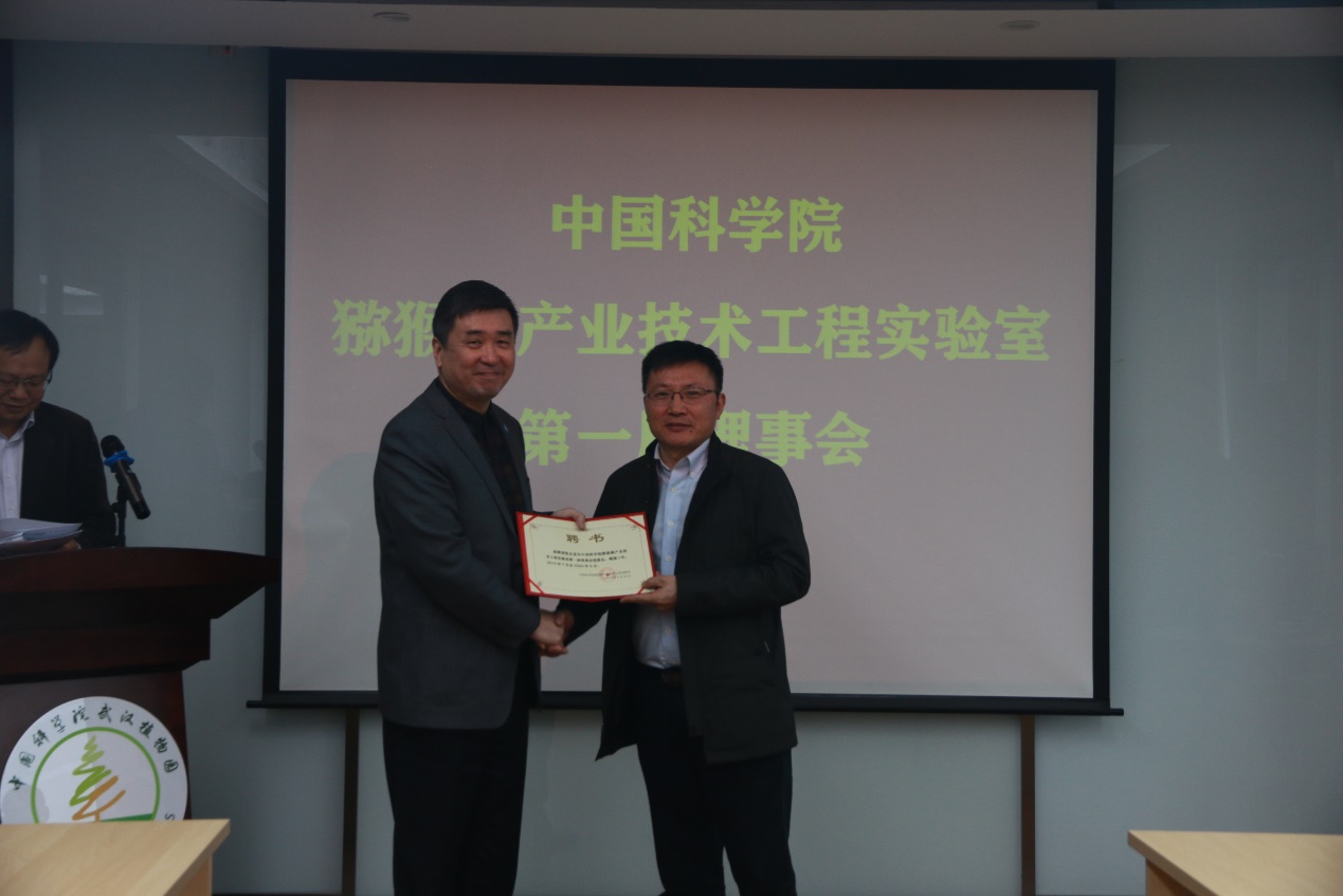 武汉植物园副主任王青锋主持理事会预备会,他代表武汉植物园致欢迎词,回顾了工程实验室的成立背景、意义和筹建过程。严庆宣读了中科院科技促进发展局关于工程实验室第一届理事会组成人员的批复,并为理事会成员颁发聘书。