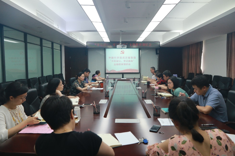 6月26日-7月2日,武汉植物园召开“不忘初心、牢记使命”主题教育调研系列座谈会,分别向科研人员代表、管理人员代表、支撑人员代表征求“推动武汉植物园发展”的意见和建议,园领导班子成员分别参加座谈会。