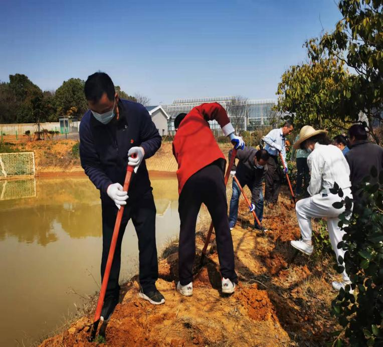 当天恰逢春暖花为迎接第44个植树节的到来,机关第一党支部党员20余名党员共同在光谷园区开展了植树活动,在水塘边种上了两排茶梅和杜鹃。阳光下的挥汗劳动,让春意更浓,让植物园更美。