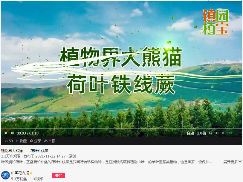 短视频展示了武汉植物园丰富的植物资源以及植物收集保育成果,进一步提升了武汉植物园的社会影响力,更好地引导社会公众开展生物多样性保护工作。