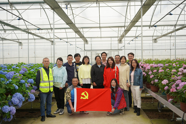 随后,通过绣球生产技术员袁泽伟的介绍,党员们了解到公司收集的绣球品种数量及花色调节等相关的栽培技术。绣球也是园艺保育中心的重点收集专类植物,双方就绣球品种栽培要点及适应性等进行了深入探讨。在四期容器苗基地,党员们查看了三角枫、木绣球、樱花、喷雪花、菲油果等的容器苗生产方式及其管理配套设施。