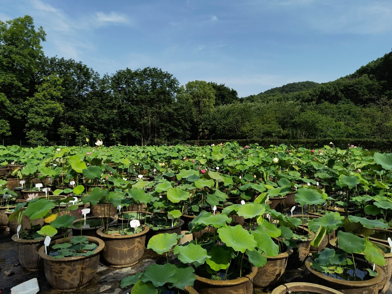 ‘秋艳’、‘提灯赏月’、‘秋牡丹’、‘惊鸿’、‘赛凌霄’……在资源圃的一隅,摆放着武汉植物园近年来育种的“明星”荷花—秋荷系列品种。荷花开在盛夏,暑热让不少爱花人望而止步。秋荷系列品种在长江中下游正常的自然条件下,花期由3个月左右延长到5-6个月,可以观赏至11月中旬左右。目前20余个秋荷品种中已有15个品种进行了国际新品种登录认证,5个申请了农业农村部新品种权保护。