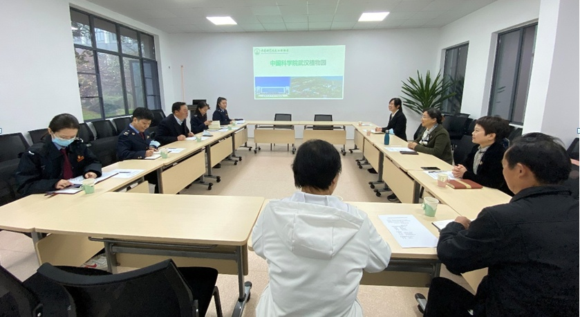 11月18日上午,武汉市东湖生态旅游风景区税务局党委书记、局长毕友林副局长游金琼等武汉植物园调研工作。武汉植物园党委书记、副主任尚纳新资产财务处处长陈艳参加了调研座谈。