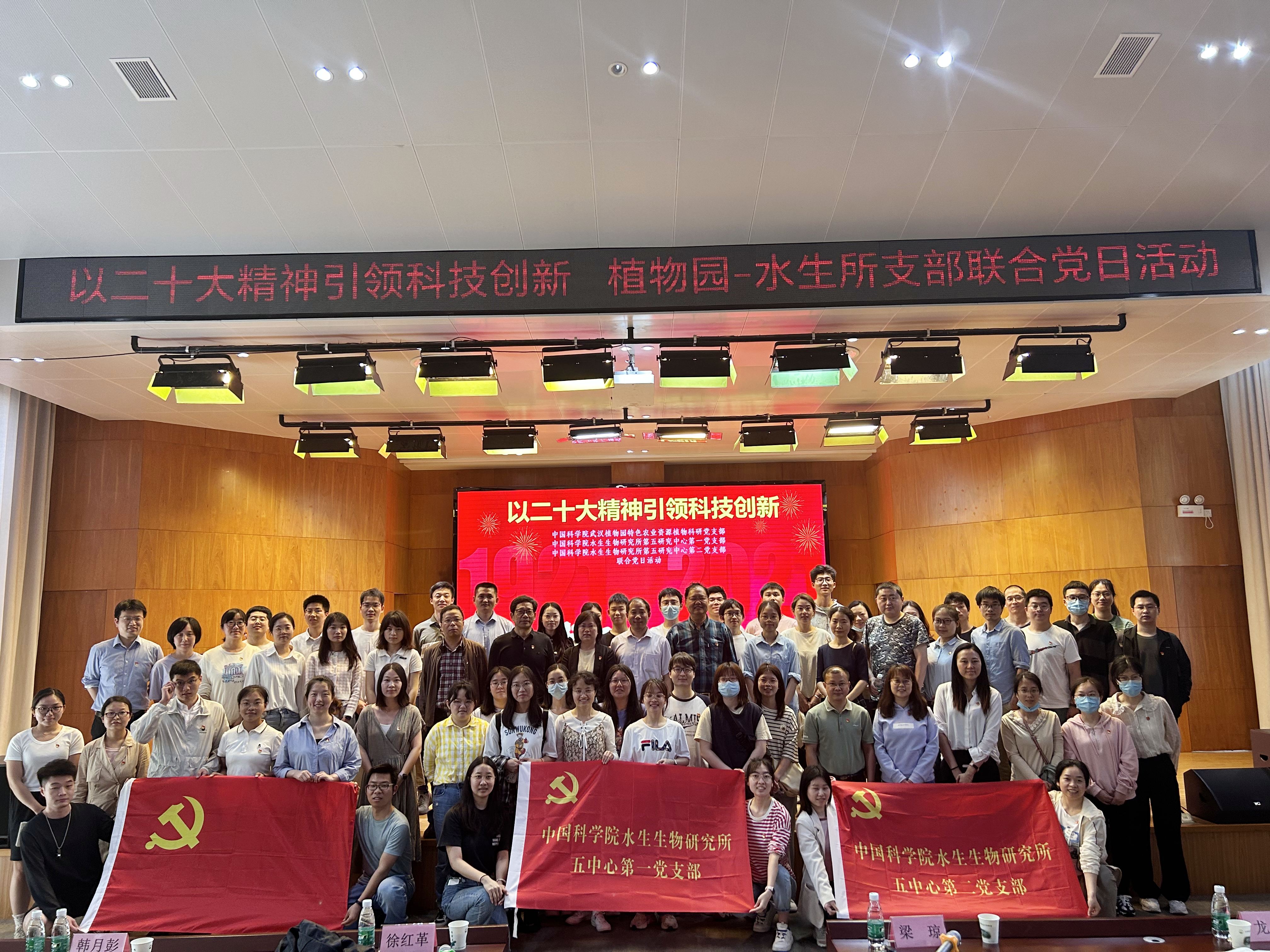 4月19日,为深入学习贯彻落实党的二十大精神,促进党建与科研相互促进与发展,中国科学院武汉植物园特色农业资源植物党支部与中国科学院水生生物研究所五中心第一党支部和第二党支部共同举办“以二十大精神引领科技创新”主题党日活动。本次活动由武汉植物园特色农业资源植物党支部书记高磊主持,武汉植物园纪委书记徐红革,水生所党委副书记梁琼以及三个党支部的近70名党员出席活动。