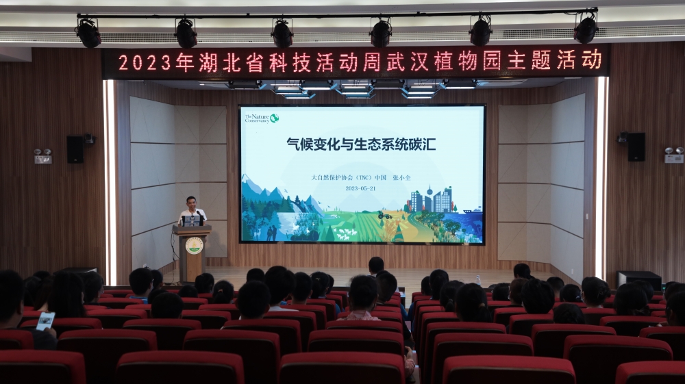 5月21日,园内两场高水平的科普讲座让公众零距离与科学大咖接触,接受科学滋养。滩涂广袤辽阔、河流纵横交错、湖泊水美鱼肥,从赤道到极地,湿地以各种生境存在,为地球贡献了极致风景,为生态描摹大美画卷。武汉植物园流域生态研究中心副主任、水域生态过程学科组组长刘文治研究员开讲,他用生动通俗的语言介绍了湿地的定义、类型、分布和功能,带领公众摸清了湿地的家底。有茭芦菱莲、鱼蚌虾蟹,更有白鹭翻飞、蛙鸣鸟啾,一张张湿地版“生物图鉴”让公众直观地感受到湿地丰富的生物多样性。他以武汉东湖开展湖泊生态修复为案例,讲述了我国正在采取的湿地保护措施,呼吁公众参与保护湿地。大自然保护协会(TNC)中国首席科学家张小全研究员受邀在武汉植物园开展讲座,他的讲座聚焦“气候变化与生态系统碳汇”,对碳中和碳达峰、气候变化的不利影响、生态系统碳汇、生态系统碳汇与碳交易等内容进行了详细的介绍,增强了公众的绿色低碳意识,激发了公众对低碳发展对策的思考。