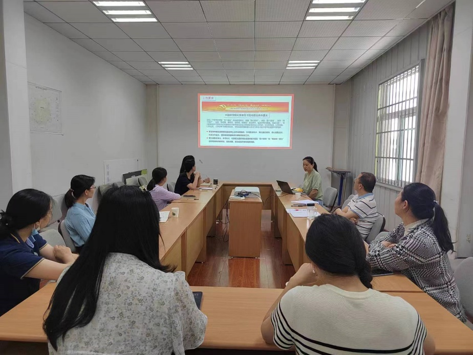 宣传委员曹承娥带领与会党员学习了《新时代新征程全面从严治党的任务要求》,从坚定不移推进全面从严治党和学习党的自我革命相关精神两个方面,引导党员从思想上固本培元,提升党性修养,永葆忠诚干净担当的政治本色。全体党员同志认真聆听,深入学习。