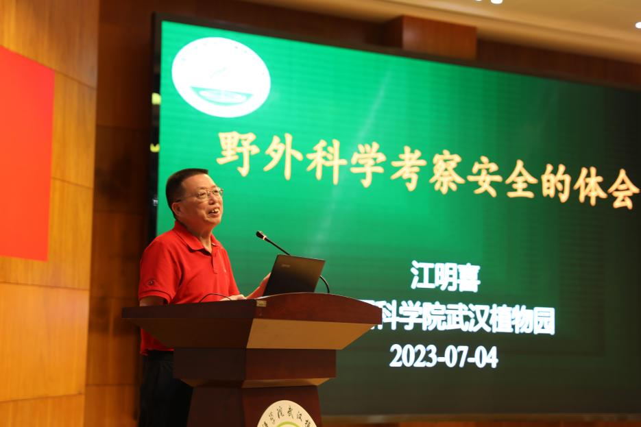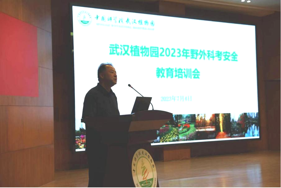 为进一步提高科研人员及研究生的野外科考安全意识,增强大家在野外科考工作中安全风险的识别与应对能力,7月4日,武汉植物园举办2023年度野外科考安全教育培训会。园纪委书记徐红革出席培训会,会议由综合办公室主任吴浩主持,百余名职工、研究生参与培训。