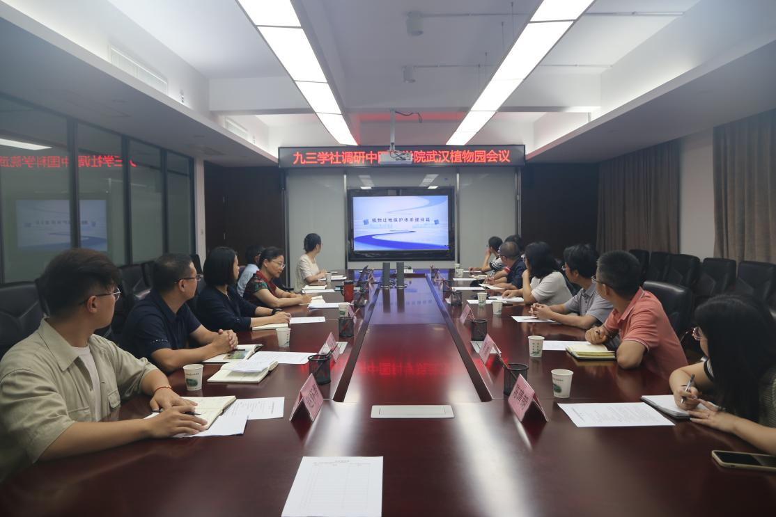 7月20日,九江市政协常委、九三学社九江市委员会副主委王菁菁,九三学社九江市委员会常委、庐山市政协二级调研员卢大美一行调研武汉植物园。武汉植物园党委书记、副主任尚纳新接待调研团并主持座谈会,武汉植物园统战部部长、科研处处长陈良等相关人员参加。