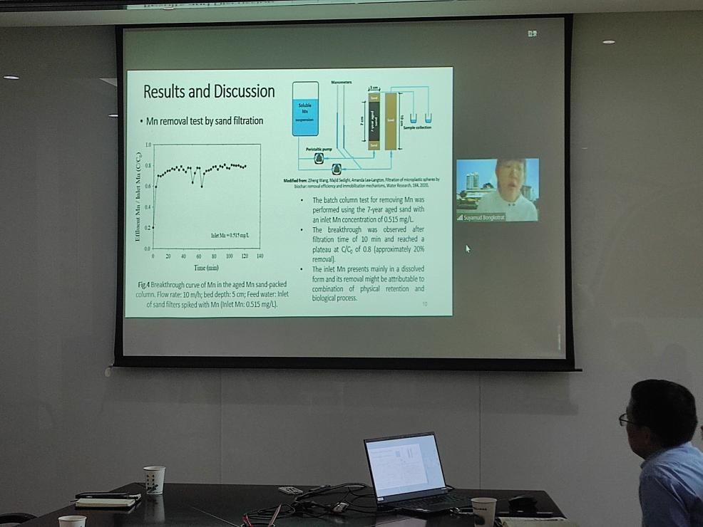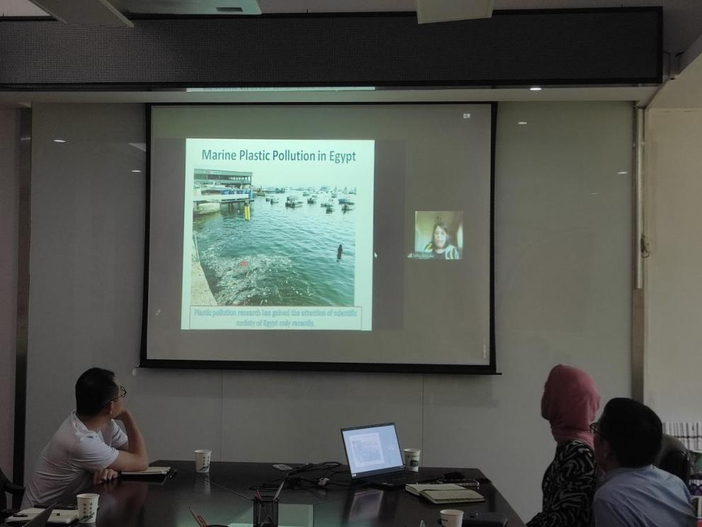Soha Shabaka教授就埃及海洋塑料污染为切入点讲述了地中海地区微塑料的分布、浓度以及对水生生物的影响;杨玉义研究员围绕水域环境中微塑料及纳米塑料的发生、毒性和生态影响作了报告;在中国科学院国际人才计划(PIFI)的支持下,博士后Bongkotrat Suyamud介绍了他在基于微生物群落结构与DOM地球化学及可降解性关系的慢速和快速滤砂器的运行优化方面的研究进展。