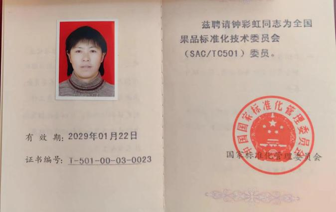 武汉植物园钟彩虹研究员被聘为全国果品标准化技术委员会委员