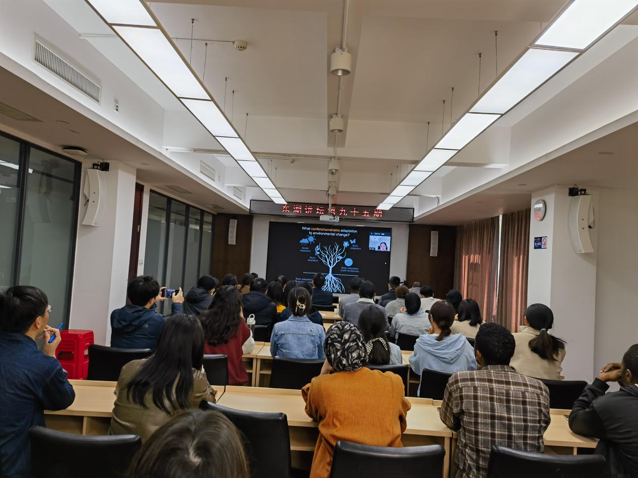 魏娜研究员以“Evolutionary ecology and genomics of adaption to environmental change”为题,围绕植物环境适应性的生态和基因组机制这一重要科学问题,介绍了自己近年来的多项研究。她以草莓属植物为研究材料,系统地探讨了植物多倍化对环境适应性与基因组遗传变异的影响,并提出本地选择是驱动局部适应性的关键进化力量;魏娜研究员还以浮萍属共生微生物组和草莓属共生微生物组两个案例,解析了哪些因素影响微生物组构成,以及微生物组会对植物适应有何影响。该报告展示了当前植物适应性研究的多个方向,拓展了大家对于植物适应性进化和生态机制的认知。