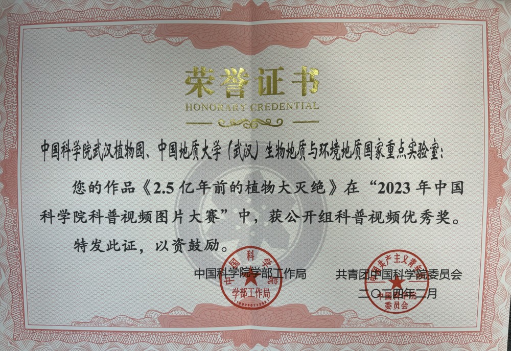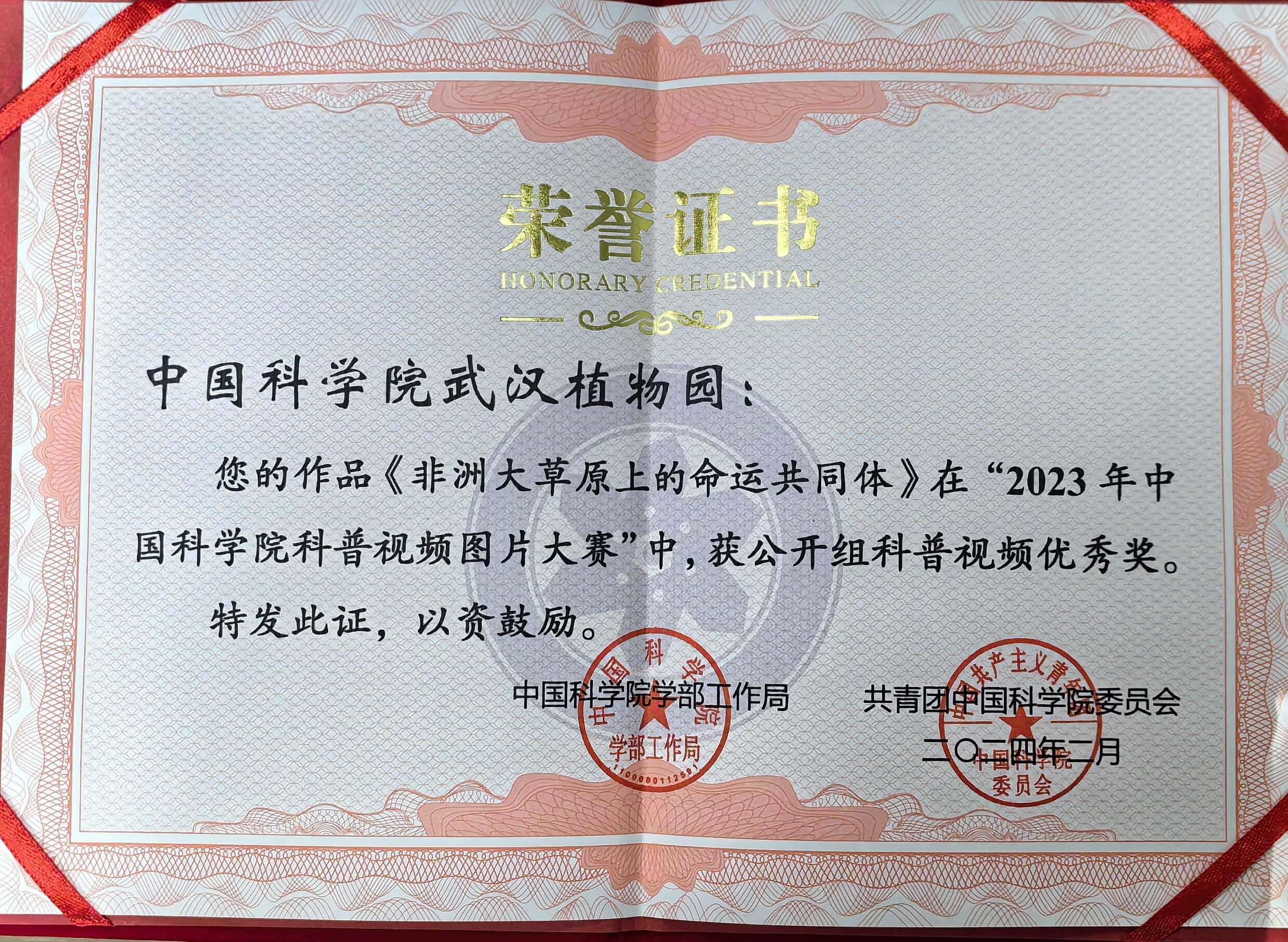 近日,中国科学院公布2023年中国科学院科普视频图片大赛获奖名单。武汉植物园两部科普视频《2.5亿年前的植物大灭绝》、《非洲大草原上的命运共同体》荣获2023年中国科学院科普视频图片大赛公开组科普视频优秀奖。