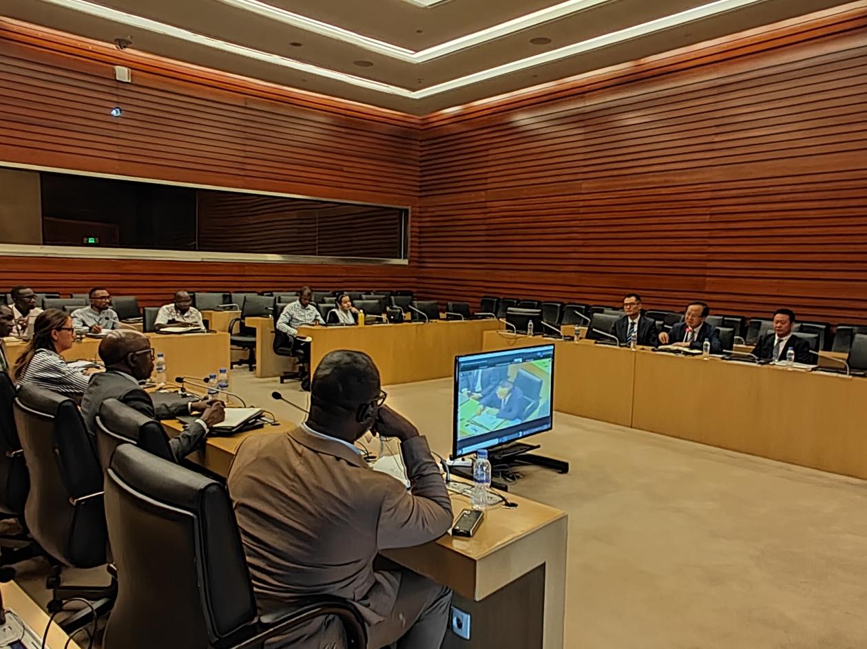 非盟委员会蓝色经济与可持续环境司司长Harsen Nyambe先生高度重视中-非中心来访交流的契机。王青锋向Harsen司长及相关人员介绍了中-非中心的概况,并回答了该司工作人员(来自非洲各国)关于对非生物多样性保护、生态环境与经济发展平衡、水资源保护与可持续利用、城市化以及对非人才培训等问题。