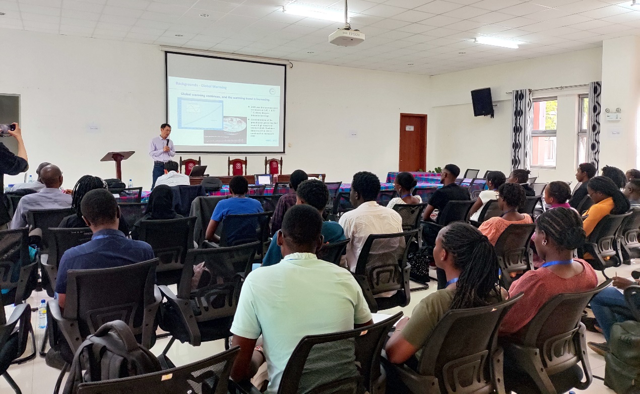 研讨会上,JKUAT卢旺达分校前副校长Thomas Ngigi博士首先介绍了JKUAT地理信息工程与GIS领域的招生和教学情况。随后,CBAS专家依次为参会学员做培训演讲。CBAS国际论坛部卢善龙研究员针对水文与水资源遥感的相关基础知识,以及当前的研究进展和最新应用案例进行了详细介绍和讲解。SDG13协调员黄磊研究员介绍了地球大数据支持SDG13目标实现的研究进展,并重点介绍了气候变化的背景现状和国内外应对举措。卫星部唐韵玮研究员围绕SDGSAT-1卫星(我国发射的全球首颗专门服务《联合国2030年可持续发展议程》的科学卫星——SDG卫星1号)及其在全球可持续发展目标(SDGs)相关指标监测进行讲解,包括SDGSAT-1载荷能力、开放科学计划以及其实现的SDGs监测案例成果。