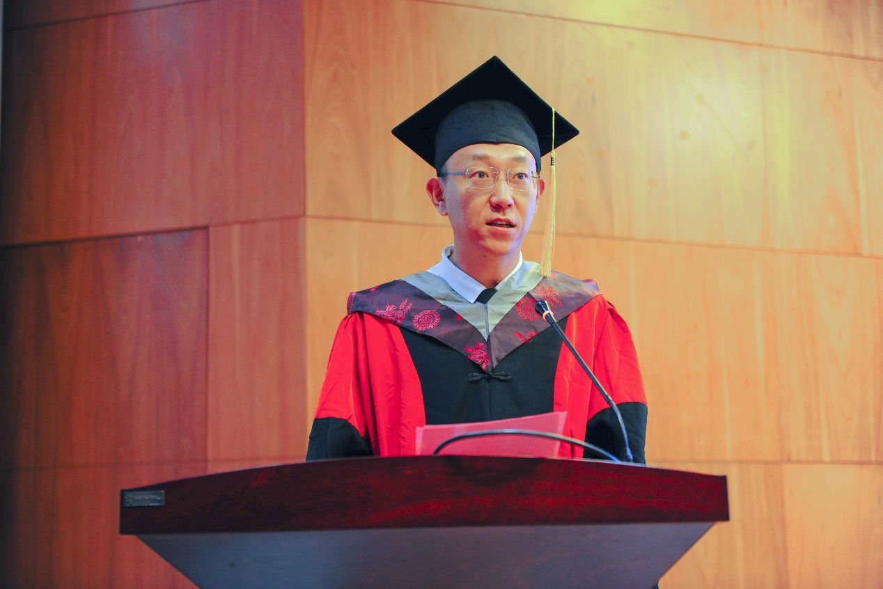 在热烈的掌声中,张秀军研究员作为毕业生导师代表寄语毕业生,做一个有责任心的人,勇于承担责任,赢得尊重;做一个有包容心的人,理解和尊重不同的观点,使心灵更加宽广,人际关系更加和谐;做一个有大格局的人,胸怀远大的志向和抱负,关注国家大事,关心人类命运,为社会的发展贡献更大的力量。
