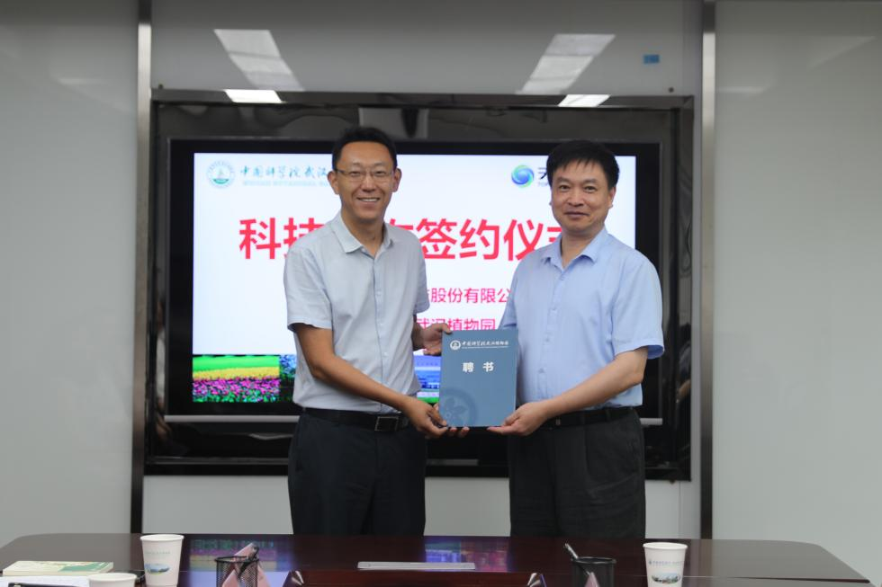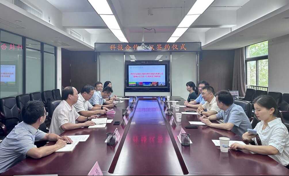 7月9日,武汉植物园与湖北天勤生物科技股份有限公司举行签约仪式,天勤生物董事长任习东、总裁陆国才一行5人出席仪式,武汉植物园主任王青锋、副主任黄伟、纪委书记贺锋,科研处、国际合作与教育处、相关学科组负责人等参加会议,会议由贺锋主持。