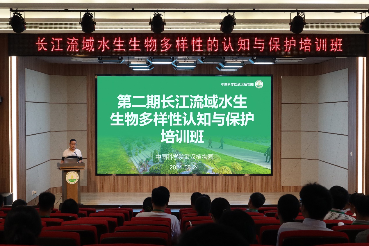 武汉植物园水生植物研究中心副主任杨玉义研究员出席开班仪式并致辞,他表示通过本次培训班,希望能凝聚各方力量加强合作,深入探讨水生生物多样性保护的有效途径,共同助推长江流域生态文明建设。