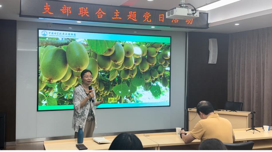 在分享环节,常驻肯尼亚中-非联合研究中心的刘怀博同志为大家带来了生动的工作分享。他详细介绍了在肯尼亚工作、生活的经历和感悟,党员们对海外工作有了更加深入的了解。随后,园艺中心公司的张鹏同志分享交流了猕猴桃工作,通过详实的数据和生动的案例,展示了猕猴桃产业的发展现状和前景。不同领域的工作分享让大家更深入了解工作一线,进一步促进了党建与业务深度融合。